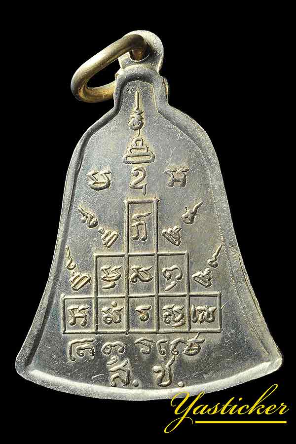 -ด้านหลังเป็นยันต์ 9 ตัวคือ....อะ สัง วิ สุ โล ปุ สะ พุ ภะ ด้านบน...มะ อะ อุ และด้านล่าง.....พระ พุ วะ เล ล่างสุด ส.ช.