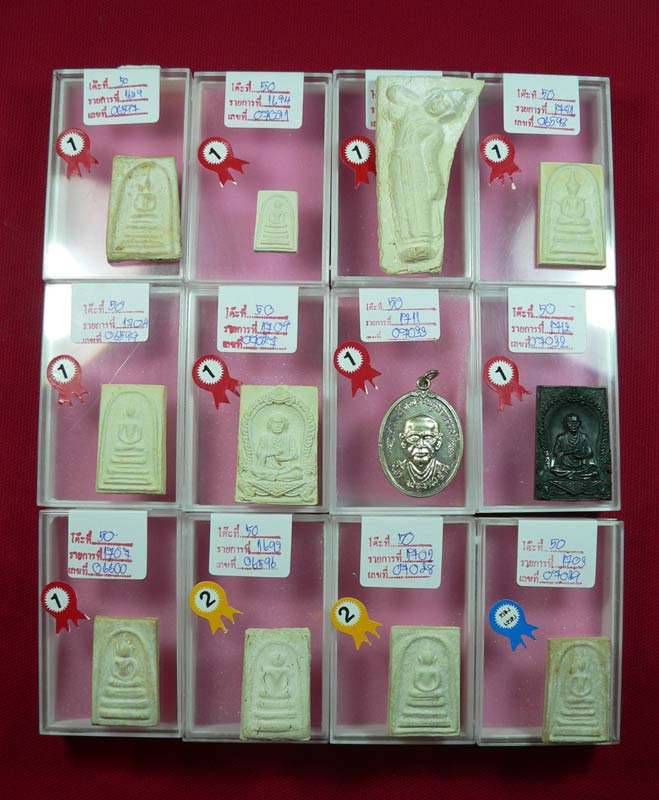 เริ่มที่โต๊ะแรก โล่ห์รวมโต๊ะ 50 พระชุดวัดใหม่อมตรส ส่ง 12 รายการ โบว์แดง 9 รายการครับ |