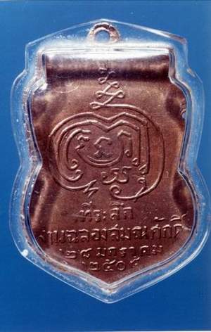 เหรียญเสมาใหญ่ทองแดง ไม่กะไหล่ทองหรือรมดำ เป็นเนื้อทองแดง มีผิวไปเป็นบล็อกเก่าของเหรียญรุ่นแรก 2504 มาปั๊มเช่นเดียวกัน จำนวนสร้าง 1,000 เหรียญ