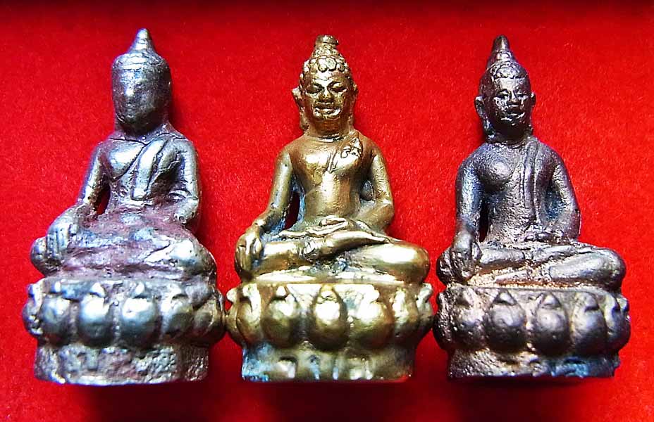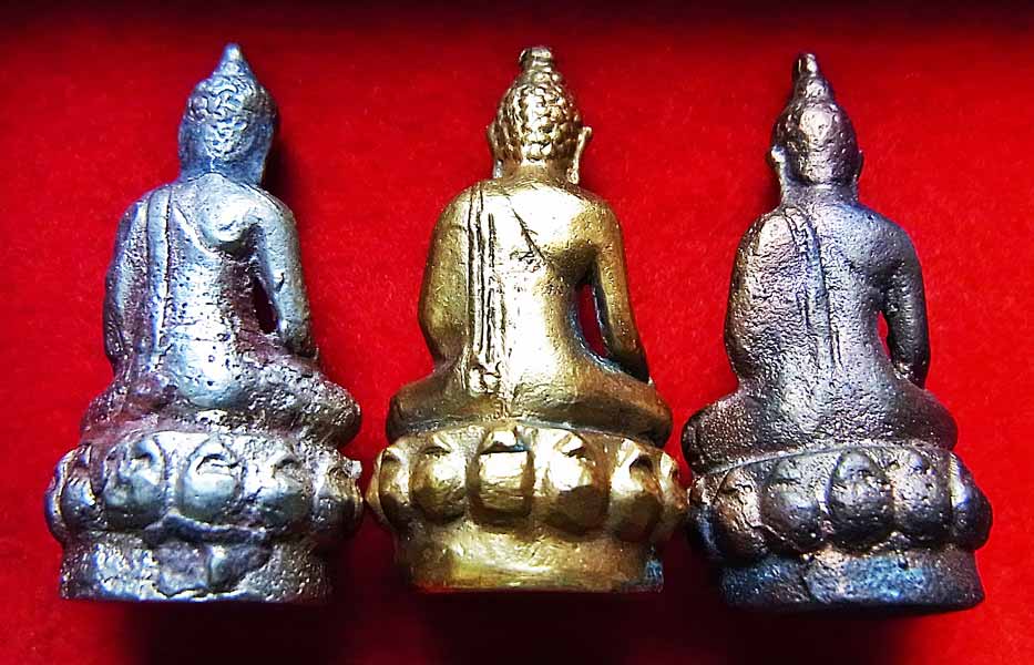 ***พระกริ่ง 3 กษัตริย์ (บางท่านเรียกว่ากริ่งเสริมดวง เพราะประสบการณ์จากผู้ที่บูชาพระกริ่งรุ่นนี้จากวัดไปแล้วส่วนใหญ่มักจะพบกับสิ่งดีๆ โชคลาภ ความเมตตาจากผู้คนรอบข้างเข้ามาในชีวิตจนเป็นชื่อเรียกของพระกริ่งรุ่นนี้อีกชื่อนึงครับ) ชุดนี้เป็นพระกริ่งพิมพ์ใหญ่ หลวงพ่อสนิท วัดลำบัวลอย จ.นครนายก ปลุกเสกเมื่อปี2518 สภาพเดิมๆครบชุด 3 องค์ 3 พิมพ์(ล้อศิลปะพิมพ์พระแต่ละสมัย) 3 เนื้อเลย (จริงๆต้องมีกล่องใส่จากวัด แต่ชุดนี้ไม่มีกล่องเพราะเจ้าของเดิมนำพระไปใส่ตลับห้อยคอ แล้วก็เลยทำกล่องเดิมที่ได้มาจากวัดหายไป) กริ่งรุ่นนี้จะตอกโค๊ดใต้ฐานเป็นปีพ.ศ.ที่สร้างคือ พ.ศ.18 พระกริ่งรุ่นนี้จัดเป็นพระกริ่งรุ่นแรกและรุ่นเดียวที่วัดลำบัวลอยจัดสร้างและหลวงพ่อสนิทปลุกเสก ปัจจุบันหาชมครบชุดแบบนี้ได้ยากแล้วครับผม ลองพิจารณากันดูนะครับ |