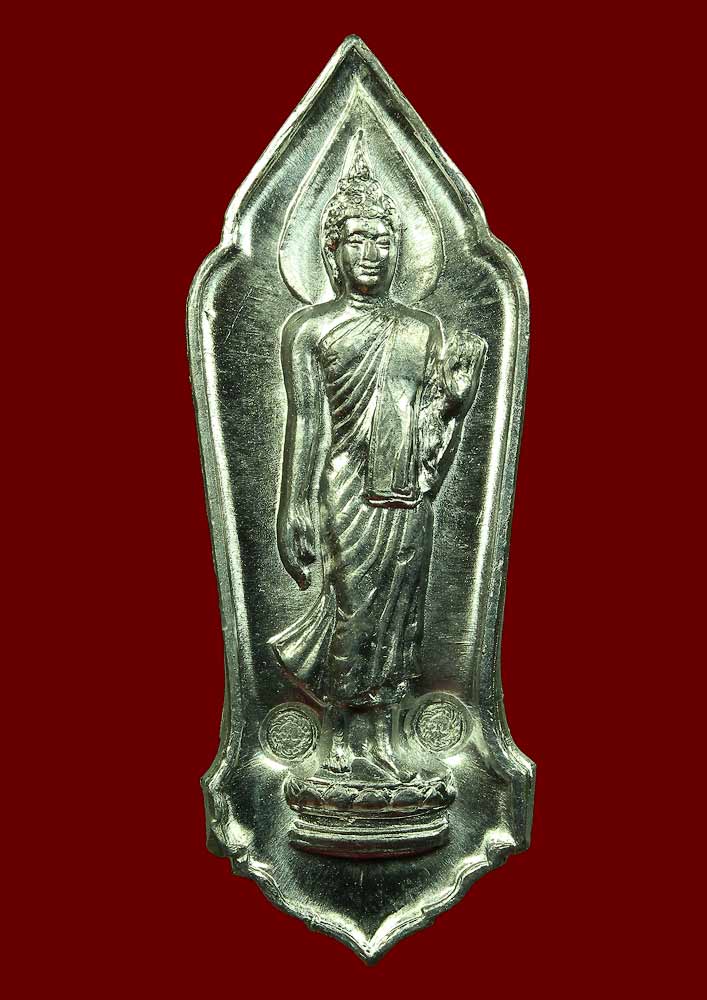 องค์นี้เนื้อตะกั่วแต่ผิวสวยดั่งเนื้อเงิน จมูกโดนไปนิดเดียว โดยทั่วไปรุ่นนี้จมูกจะโดนเยอะ เนื่องจากตะกั่วเป็นโลหะที่มีความอ่อนกว่าโลหะชนิดอื่น ส่วนผิวแบบนี้บอกคำเดียวว่าแบบหาชมได้ยาก ยิ่งเป็นโค๊ดวัดป่าประดู่ (ระยอง) 2 โค๊ด (มีเข็มอีกต่างหาก) ยิ่งหาชมยากครับ |