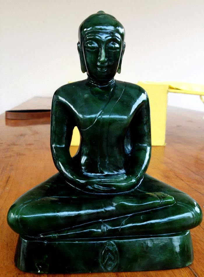 องค์นี้หยกสวยมากครับ เขียวมรกตครับ เรียกได้ว่า เกรดA ครับ หยกที่มีสีเขียวสดเข้ม มีไม่กี่องค์ครับที่เขียวสวยขนาดนี้ ส่วนมากที่เจอก็จะมีสีขาว ผสมในเนื้อหยกเยอะ บางท่านก็ตีไปเป็นปลายหยก หยกเกรด B ,C คับ ในจำนวนสร้างทั้งหมดจาก 2534 องค์ ตรงตามปี พ.ศ สร้าง องค์นี้แกะจากโรงงานที่ 1 คือ โรงงานวาลินนานกู เมืองปักกิ่ง ประเทศสาธารณรัฐประชาชนจีน คือโรงงานแม่ จึงแกะออกมาได้เหมือนองค์จริง และองค์อื่นๆ แ่บ่งส่งไปแกะที่โรงงานลูก อีก 2 แห่ง