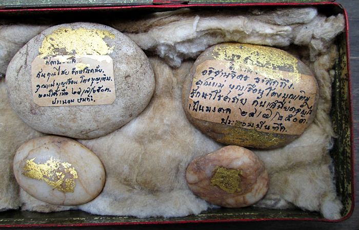 ศิลา น้ำ อธิษฐาน (หิน หรือ กรวดใต้น้ำ) ของคุณแม่บุญเรือน โตงบุญเติม หายากมากๆ ใครมีต่างหวงแหนครับ (หายากกว่าพระพุทโธน้อยเสียอีกครับ ) ยิ่งของแท้ ยิ่งหาได้ยากสุดๆ เพราะใครจะไปแยกแยะได้ว่าเป็นของแท้หรือไม่ ที่มาเป็นอย่างไร ใครจะเล่านิยายต่างๆประกอบก็ไม่มีใครพิสูจน์ได้ ต้องคนที่เชื่อใจกันจริงๆถึงจะบอกเล่ากันถึงที่มา และพิสูจน์การเก็บเก่ากันได้เท่านั้น จึงจะเป็นของจริง