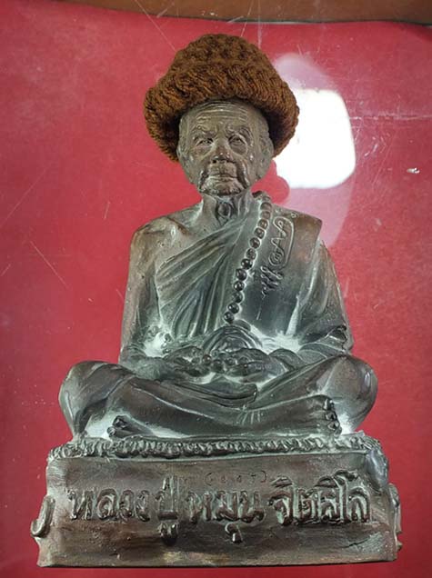 รูปหล่อบูชาขนาดหน้าตัก 3 นิ้ว ตั้งหน้ารถ เทหล่อแบบโบราณ หล่อด้วยนวะโลหะผสมชนวนมวลสารเก่าหลวงปู่หมุน สร้าง 399 องค์