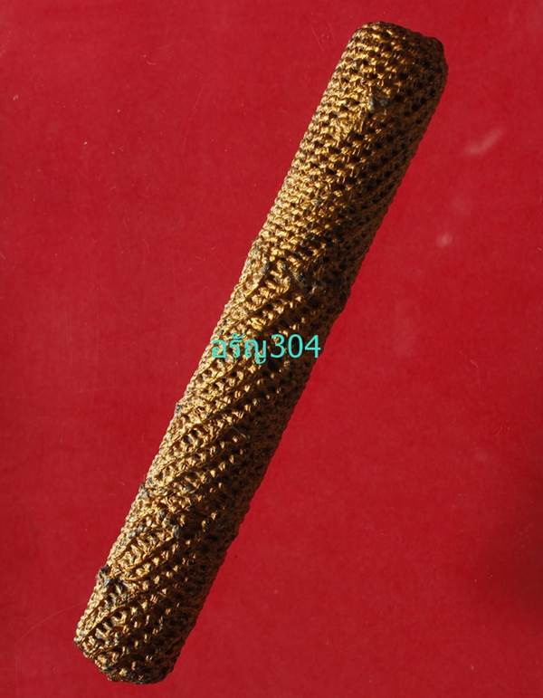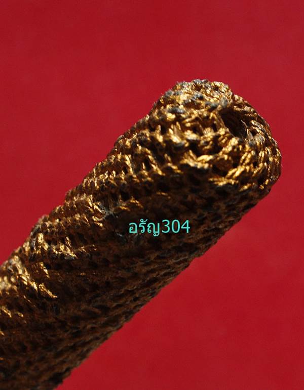 และมีข้อสรุปที่คลาใจ จากภาพด้านนอก ดูจากลายถักเชือก ผมดูแล้วไม่ใช่ลายถักมาตรฐานของหลวงปู่กาหลง ขนาดก็ค่อนข้างเล็ก ทองที่ปิดอยู่ก็ไม่ใช่แบบคลุกทองแต่เป็นแบบทาทอง