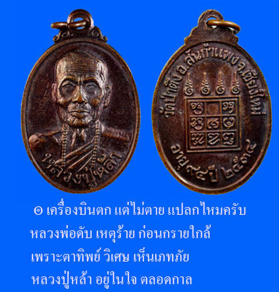 ตกและในเครื่องบินนั้น ลูกศิษย์ของท่านตีตั๋วเตรียมเดินทาง แต่ก่อนออกเดินทางได้ไปกราบหลวงปู่ก่อน หลวงปู่ทำน้ำมนต์ให้ดื่มเพื่อเป็น