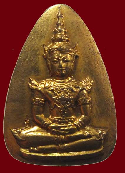 พระแก้วรุ่นนี้สถาปนาขึ้นจากผงสำคัญๆ หลายอย่าง เช่น ผงชันเพชรจากองค์มหาบุษบกทองคำ ที่ประทับขององค์พระแก้วมรกต,ผงจิตรลดา, ผงพุทธคุณของครูบาอาจารย์หลายๆ องค์,ผงตะไบพระกริ่ง-พระชัยวัฒน์ปวเรศ วัดบวรนิเวศ ปี 2530 ฯลฯ เหรียญชุดนี้สร้างด้วยเนื้อนวโลหะิพิเศษ มีส่วนผสมของชนวนทองสัมฤทธิ์จากองค์พระมงคลบพิตรด้วยครับ แล้วกะหลั่ยทองอีกครั้งหนึ่งครับ! "เหรียญนี้เป็นเหรียญต้นแบบ ที่นำมาถอดพิมพ์ทำเนื้อผงปฐวีธาตุครับ!" (เดิมด้านหลังของเหรียญนี้ จะเป็นรูปครึ่งองค์ของ สมเด็จพระพุทธชินวงศ์ วัดเบญจมบพิตร) สร้างน้อยมากๆ และได้รับการอธิษฐานจิตจากหลวงปู่คำพันธ์ วัดธาตุมหาชัย และหลวงพ่อเกษม เขมโกด้วยครับ |