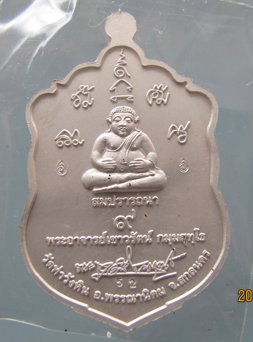 พระอาจารย์เชาวรัตน์ กมมสุทโธ วัดท่าวังหิน ต.เชิงชุม อ.พรรณานิคม จ.สกลนคร ท่านเป็นศิษย์หลวงปู่สิม พุทธาจาโร วัดถ้ำผาปล่อง จ.เชียงใหม่ (วัดคำประมง จ.สกลนคร)เหรียญรุ่นนี้นับเป็นรุ่นที่ 9 ชื่อรุ่น สมปรารถนา พระอาจารย์เป็นผู้ตั้งให้เองทั้งรุ่นและชื่อ กำลังอยู่ในขั้นตอนการตอกโค๊ตและหมายเลขเหรียญอยู่ แต่อยากโชว์ก่อนครับ เนื้อเงินและเนื้อทองคำชมครับ |