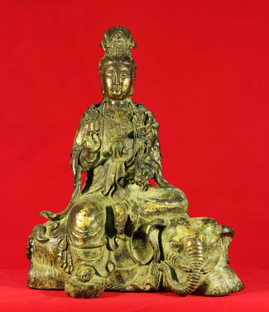 พระมัญชุศรีโพธิสัตว์ และพระสมันตภัทรโพธิสัตว์ หน้าฐาน 9 นิ้ว สูง 11 นิ้ว...พระสมันตภัทรโพธิสัตว์ (SAMANTABHADRA BODHISATTVA) หรือผู่เสียนผูซ่า(普贤菩萨) ในสำเนียงแต้จิ๋วนิยมเรียกว่า โผวเฮี้ยงผ่อสัก บ้างเรียกพระนามอีกแบบหนึ่งว่า เปียนจี๋ผูซ่า(遍吉菩萨) พระองค์ทรงเป็นพระอัครสาวกเบื้องขวาของพระศากยมุนีพุทธเจ้า ในขณะที่พระมัญชุศรีโพธิสัตว์เป็นพระอัครสาวกเบื้องซ้าย ดังนั้น ในคตินิยมทางพุทธศิลป์จึงนิยมการสร้างประติมากรรมหรือจิตรกรรมรูปพระศากยมุนีพุทธเจ้า พระสมันตภัทรโพธิสัตว์ และพระมัญชุศรีโพธิสัตว์ เรียกกันเป็นองค์สาม อันเป็นสัญลักษณ์แห่งแดนสุขาวดี เรียกกันว่า ฮว๋าเอี๋ยนซานเสิ้ง(华严三圣)... พระมัญชุศรีมหาโพธิสัตว์ (मञ्जुश्री) หรือ มัญชุศิริมหาสัตวะ ทรงเป็น ๑ ใน ๔ อัครมหาโพธิสัตว์แห่งพระพุทธศาสนามหายาน อันประกอบไปด้วย พระอวโลกิเตศวรมหาโพธิสัตว์ (มหากรุณา), พระมัญชุศรีมหาโพธิสัตว์ (มหาปัญญา), พระกษิติครรภมหาโพธิสัตว์ (มหาปณิธาน) และพระสมันตภัทรมหาโพธิสัตว์ (มหากิริยา) ทั้งยังเป็น ๑ ใน ๘ อัครมหาโพธิสัตว์แห่งพระพุทธศาสนาวัชรยาน ทรงเป็น ๑ ใน ๓ มหาบุรุษแห่ง พุทธาวตังสกโลกธาตุ และยังเป็นอัครสาวกข้างซ้ายฝ่ายพระโพธิสัตว์แห่งพระศากยกมุนีพุทธเจ้าอีกด้วย... |