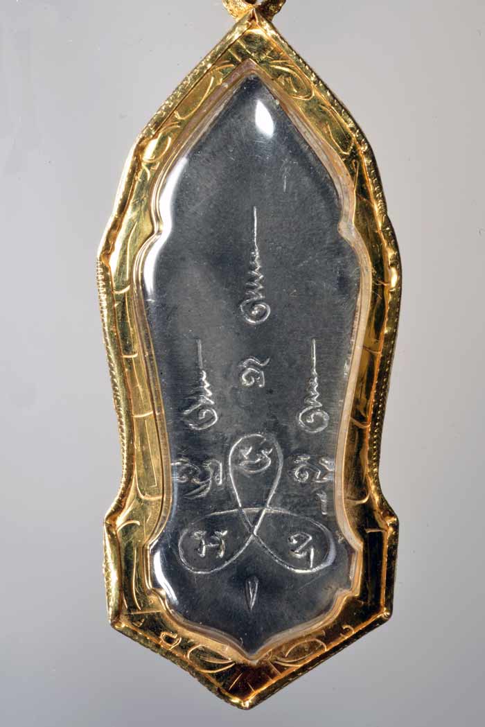 สำหรับ 4 ภาพแรก เป็นสภาพผิวพระในปัจจุบันหลังจากผมนำมาแขวนบูชาติดตัวประมาณ 1 ปี มีการเปลี่ยนแปลงผิวของพระจากสีขาวผ่องเป็นสีดำคล้ำลง และมัน ๆ ปรอทมากขึ้น น่าจะเป็นไปตามธรรมชาติของพระที่มีตะกั๋วผสม ยิ่งนานปีผิวตะกั๋วจะกลับดำประมาณนั้น แต่ผมดูแล้วน่าเป็นอาการของขึ้น เข้มขลังอลังการด้วย แบบโบราณเขาว่าตกน้ำมันประมาณนั้น