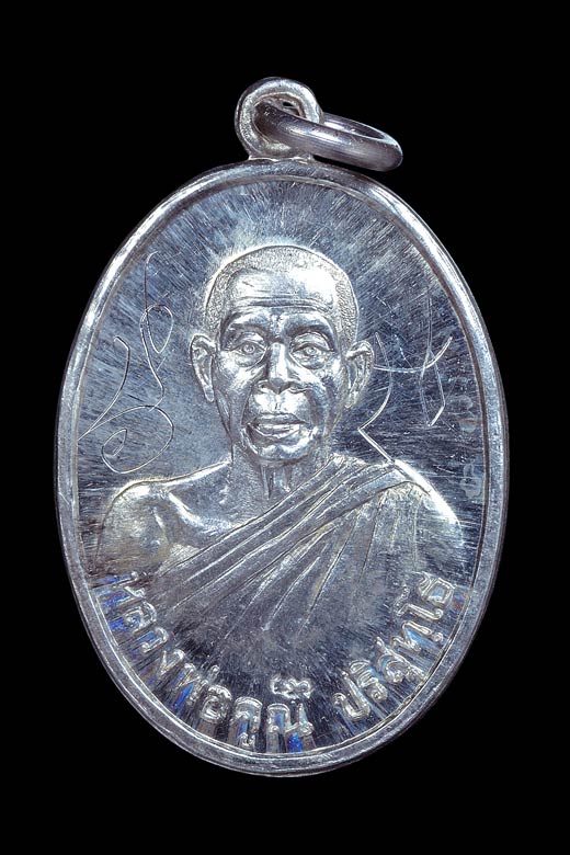 เหรียญรูปเหมือนครึ่งองค์ : หลวงพ่อคูณ ปริสุทฺโธ วัดบ้านไร่ ฉลองอายุ 65 ปี ( เนื้อเงิน ) พ.ศ.2531 ( จัดสร้าง 65 เหรียญ ) จารลายมือหลวงพ่อคูณ ยา นะ