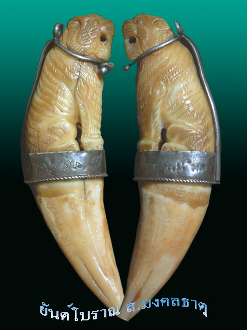 เป็นเขี้ยวเสือโคร่งชนิดเต็มเขี้ยว ของหลวงพ่อเปิ่น วัดบางพระ เทพเจ้าแห่งลุ่มน้ำนครชัยศรี เลี่ยมเงินแกะลายเดิมๆจากวัด ช่วงปี 253xกว่านะครับ