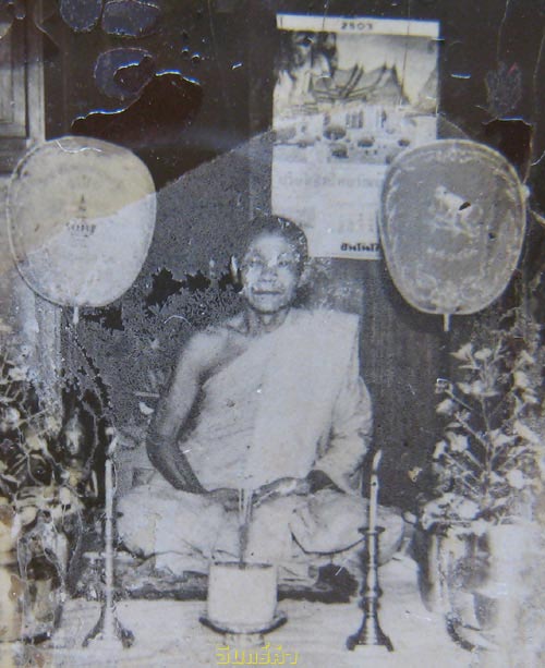 รูปนี้แหละครับที่เป็นต้นแบบเหรียญหลวงพ่อนารถรุ่น1 ปี2503 ด้านหนึ่งเป็นหลวงพ่อนารถ นั่งสมาธิหน้ากระถางธูปไฟในเปลียวเทียนยังติดอยู่เลยครับ ด้านหลังหลวงพ่อนารถมีปฎิทินปี2503