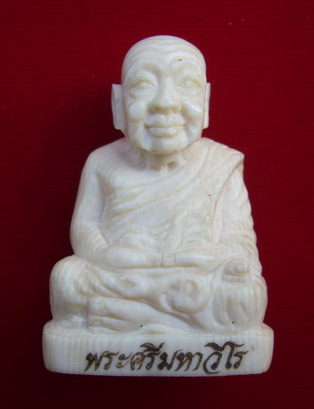 งาแกะรูปเหมือนหลวงปู่ศรี มหาวีโร สร้างจำนวน ๑๙ องค์ หน้าตักประมาณ ๑ นิ้ว สูงประมาณ ๑.๗ นิ้ว..หลวงปู่เมตตาปลุกเสกให้เมื่อวันที่๒๓/๑๒/๒๕๕๐คณะศิษย์อ่อนนุชสร้าง..ใต้ฐานบรรจุเกศาหลวงปู่ศรีและของมงคล๕อย่างของหลวงปู่ศรี ที่ฐานด้านหน้าเขียนว่า พระศรี มหาวีโร ที่ฐานด้านหลัง วัดป่ากุง ร้อยเอ็ด ๒๕๕๐ ใต้ฐาน โค๊ด ศ....และหมายเลขประจำองค์พระ (ตัวหนังสือทุกตัวยิงด้วยเลเซอร์) ป้องกันการปลอมแปลง รับประกันไม่มีการสร้างเพิ่มและไม่มีเสริมแน่นอนครับ(พิเศษมีพิมพ์ก้นตัน๑องค์ ไม่บรรจุเกษาหมายเลข๒๐) |